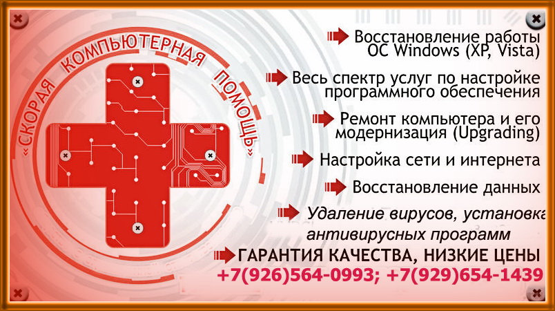 Скорая компьютерная помощь на дому тел: +7 (926) 564-09-93; +7 (929) 654-14-39