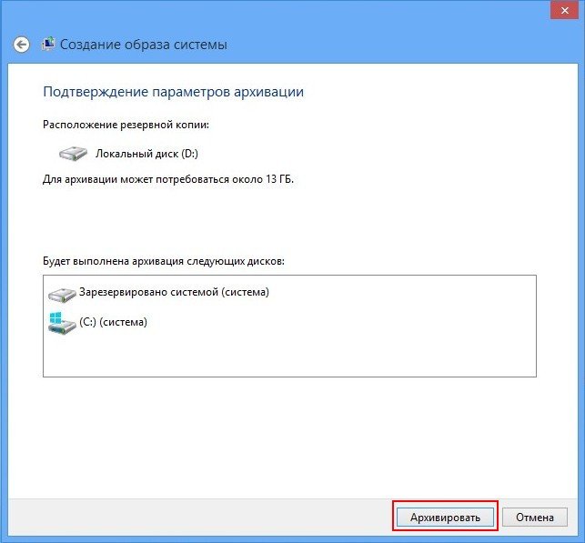 Создание полного образа восстановления Windows 8