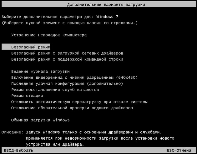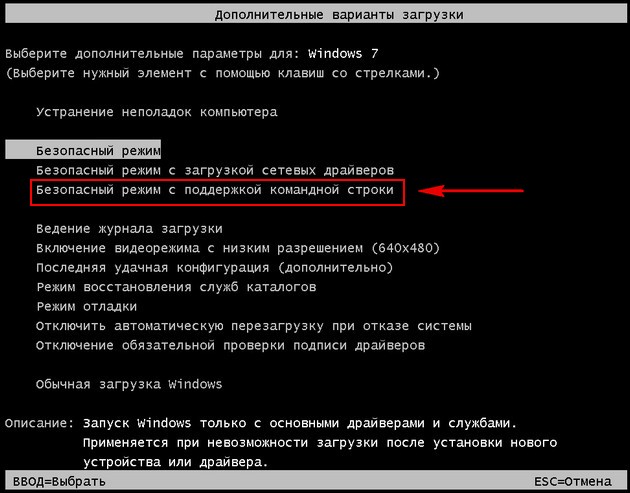 Значит, вам нужно войти в безопасный режим или безопасный режим с поддержкой командной строки и произвести восстановление системных файлов. Как это сделать?
