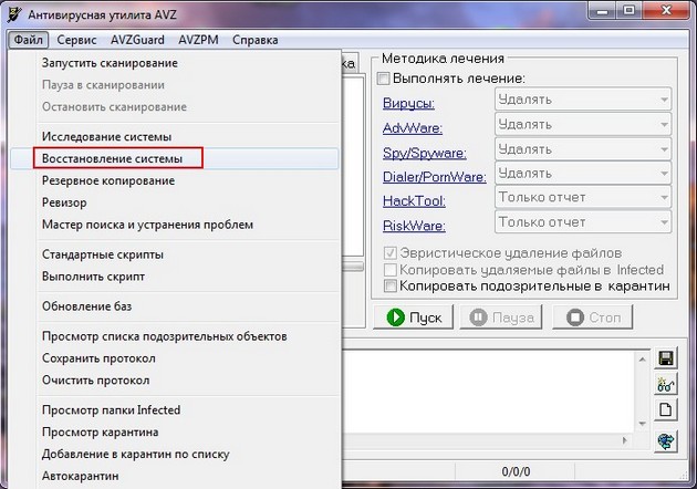Хочу привести в пример всем известную утилиту AVZ. Если всё что сказано выше не поможет, можете применить данную утилиту.
