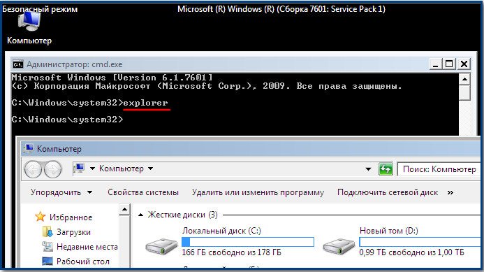 Всё это хорошо, но мы с вами рассмотрели решение проблемы с одной стороны, то есть файл Explorer.exe не заражён, а вирусом произведены вредоносные изменения в реестре. Мы с вами провели восстановление системы, просканировали антивирусными утилитами нашу Windows и удалили вирусы, затем исправили реестр, вот в принципе и всё, проблема решена и после загрузки в нормальный режим у нас появляется рабочий стол.