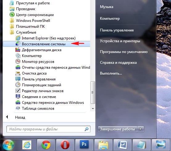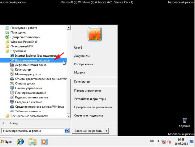в большинстве случаев свой рабочий стол вы увидите. Применяем восстановление системы, откатываемся на день назад.