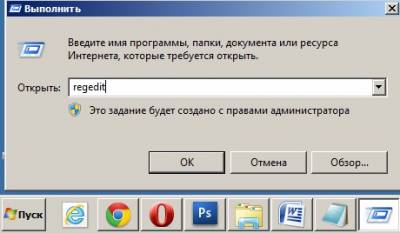 В безопасном режиме, запускаем реестр – Пуск ->Выполнить набираем в поле ввода regedit,