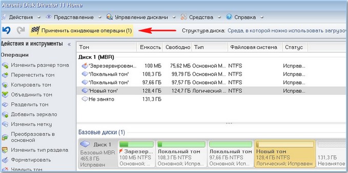 Наша программа работает в режиме отложенной операции, кстати очень правильно придумано, у вас ещё есть время подумать. Подумали, нажимаем на кнопку применить ожидающие операции.