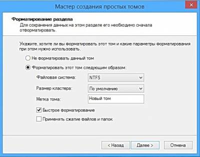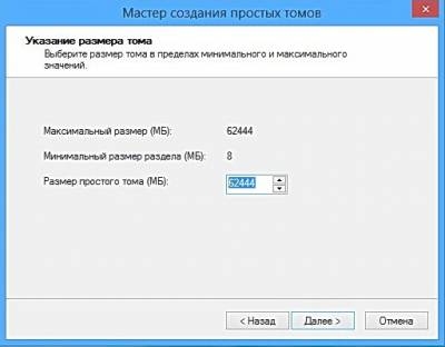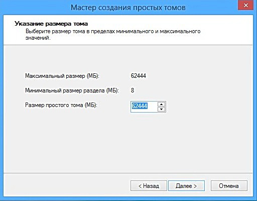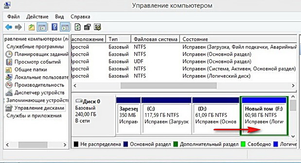 Создаём Новый том F:, на который и будем устанавливать Windows 7. В размере указываем всё не распределённое пространство