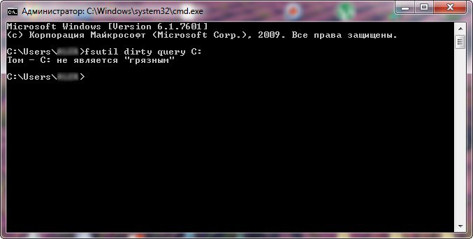 Можно проверить, отмечен ли диск «грязным битом» можно так, введите в командной строке команду fsutil dirty query C:, где «C:» – буква проверяемого на предмет «грязного бита» диска.