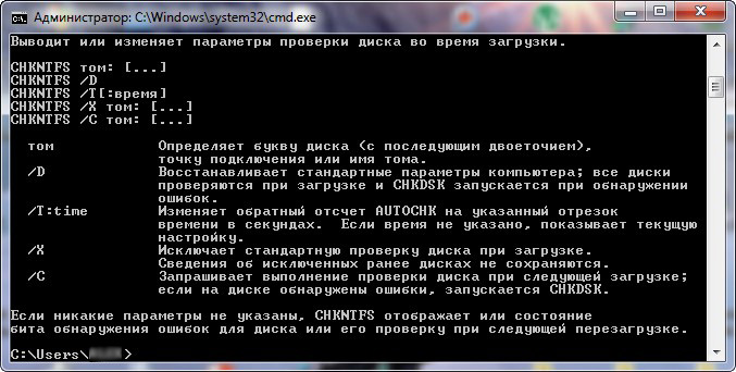 Кстати можете ввести команду Chkdsk / ? и ознакомиться с HELP
