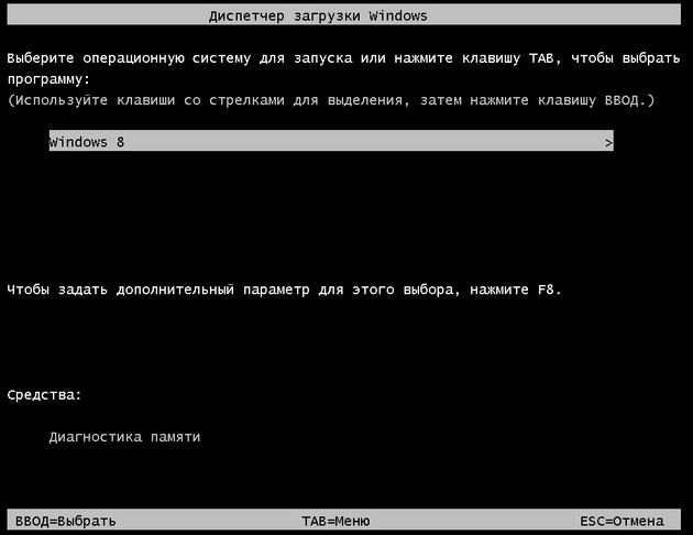 и загрузка Windows 8 будет начинаться вот так, при желании нажмём F8