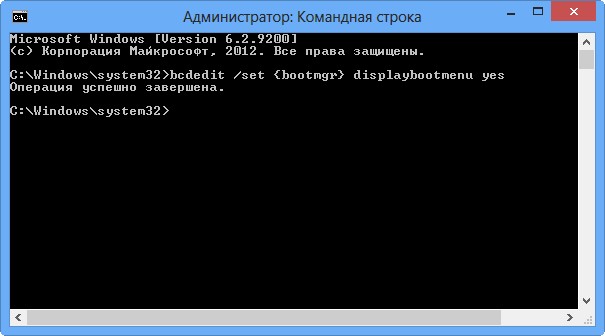 Есть ещё способ попасть в безопасный режим Windows 8, путём редактирования файла данных конфигурации загрузки BCD. Этим способом мы вернём клавише F8 её назначение. Открываем командную строку от имени администратора и вводим команду: