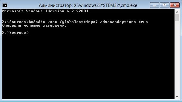 bcdedit /set {globalsettings} advancedoptions true