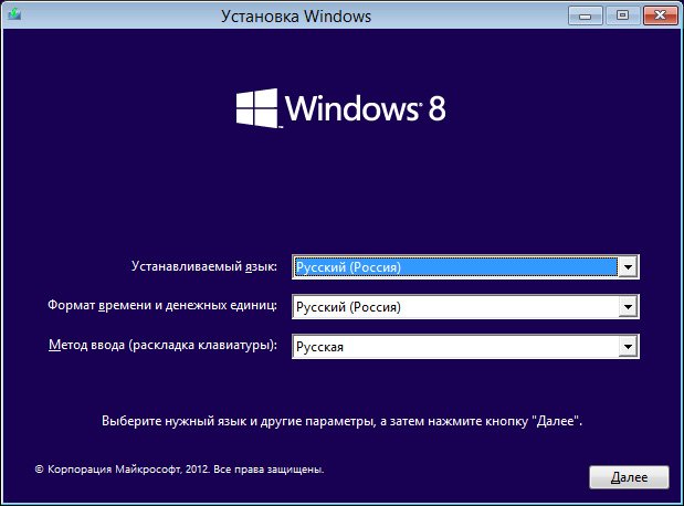 В этом случае нам придётся воспользоваться скрытыми возможностями Windows 8, но без диска восстановления или установочного диска Windows 8 нам не обойтись. Например диск восстановления Windows 8 можно изготовить в самой восьмёрке за 5 минут. Итак, загружаем компьютер с диска восстановления или установочного диска Windows 8. Нажимаем далее.