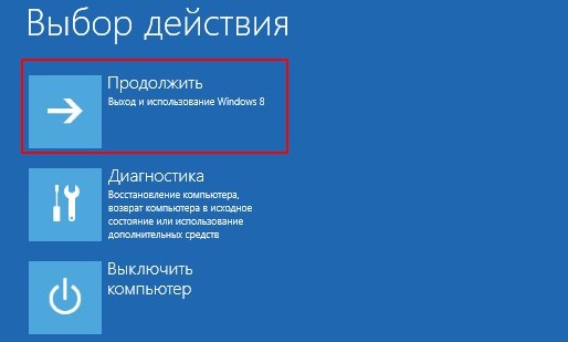 Выходим из командной строки. Жмём Продолжить (выход и использование Windows 8).