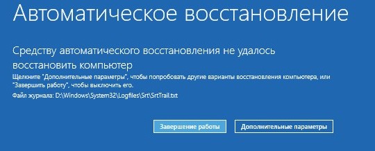 Предположим, что у Вас серьёзная неполадка и загрузка Windows 8 заканчивается ошибкой. Автоматическое средство восстановления запуска системы не помогает, а простое восстановление системы не срабатывает.