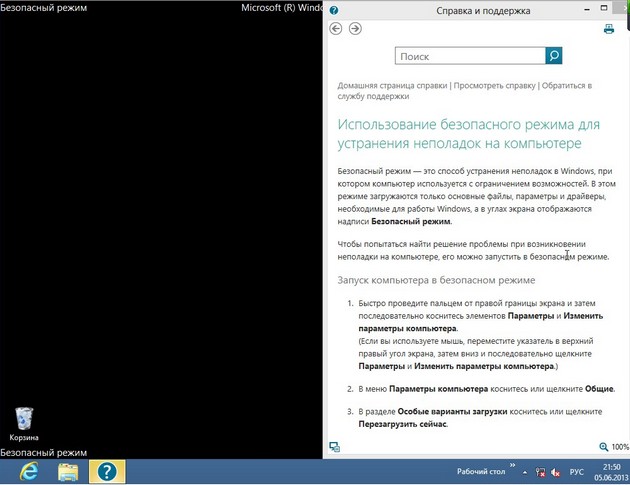 и пожалуйста, загружается безопасный режим Windows 8.