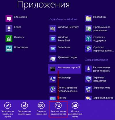 Открываем командную строку от имени администратора
