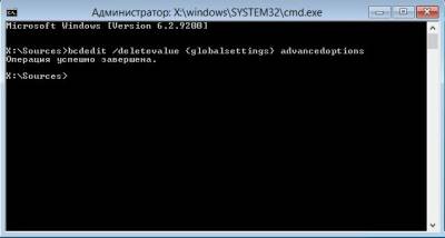 bcdedit /deletevalue {globalsettings} advancedoptions